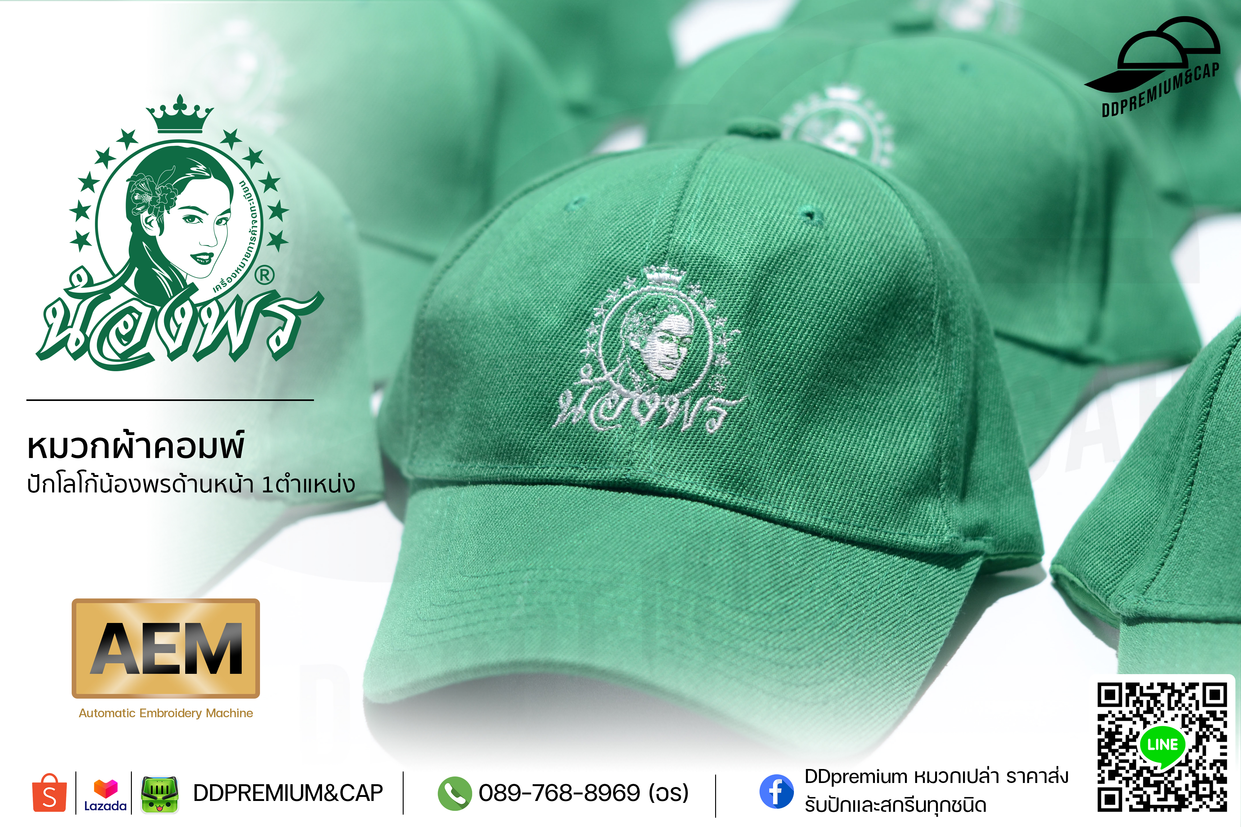 น้องพร ซีฟูด - หมวกผ้าคอมพ์พร้อมปักโลโก้ 1ต่ำแหน่ง