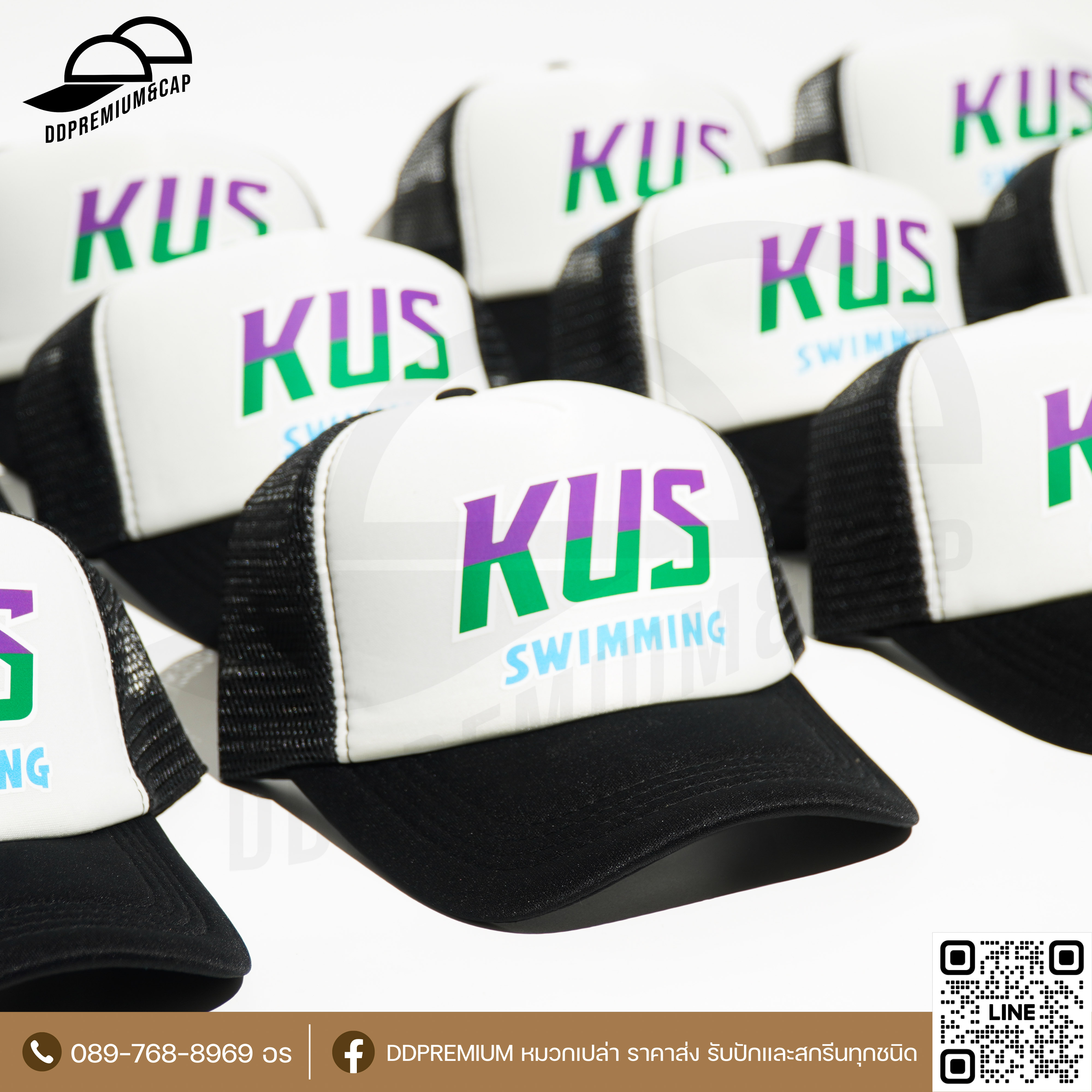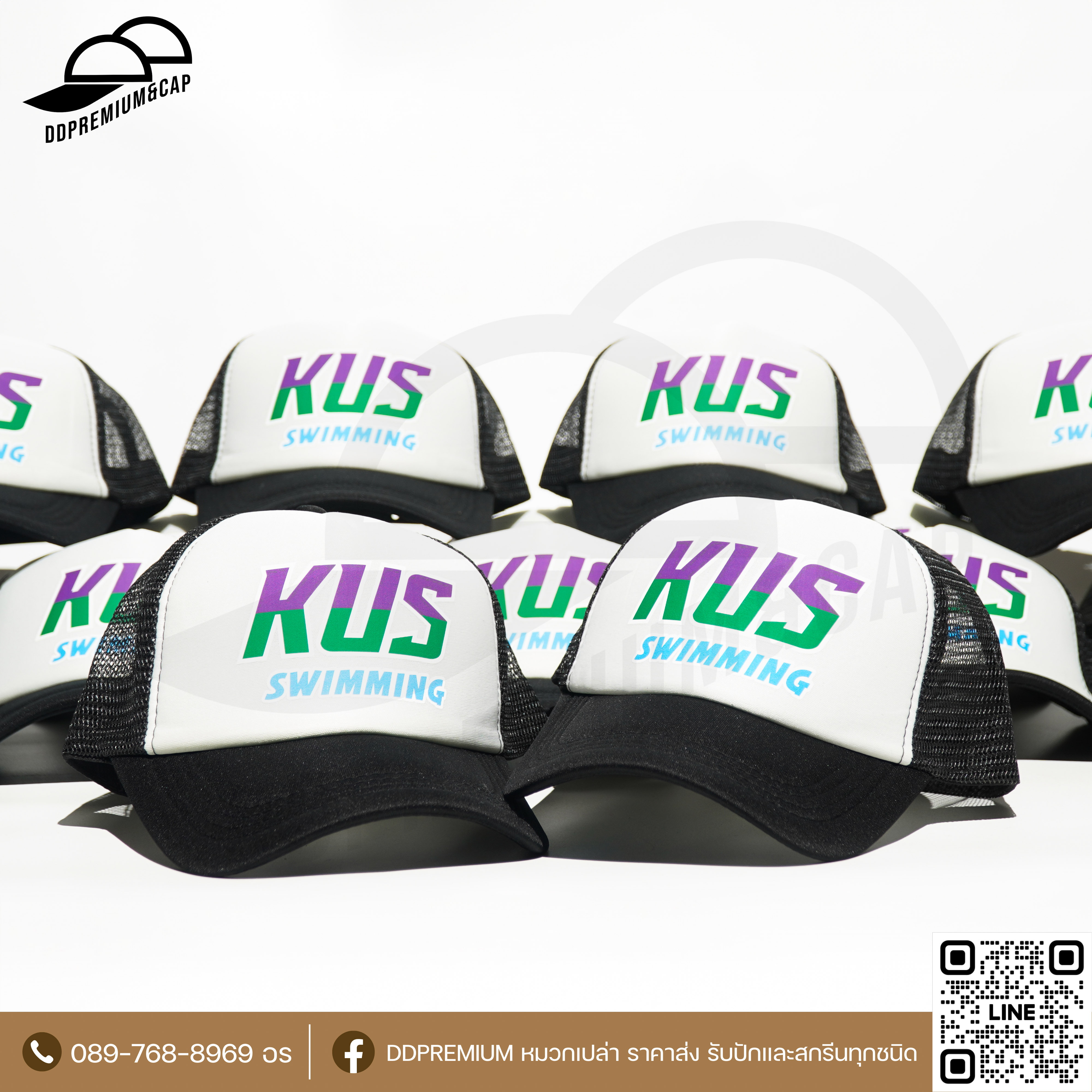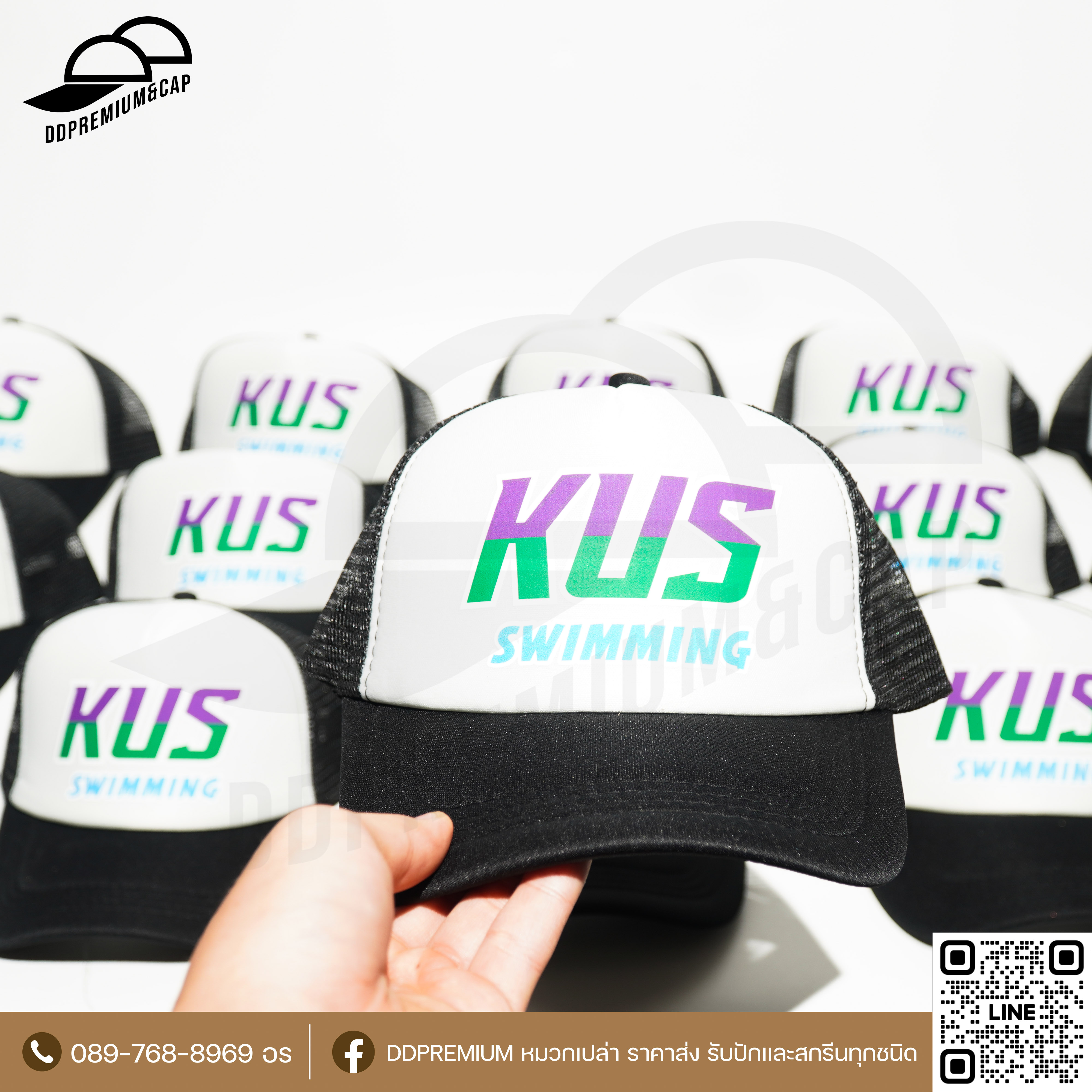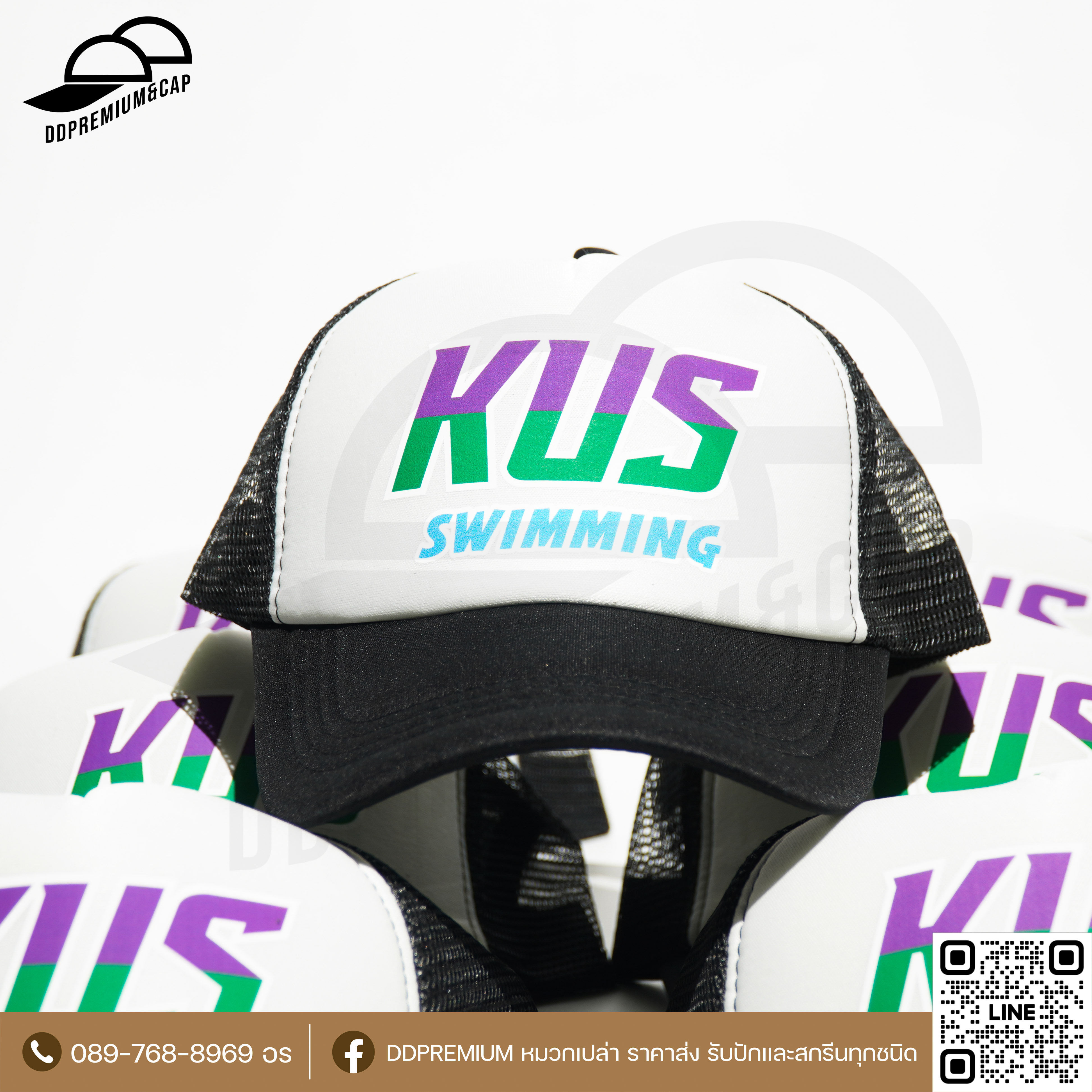 KUS SWIMMING - หมวกหน้าฟองน้ำหลังตาข่ายพร้อมสกรีน