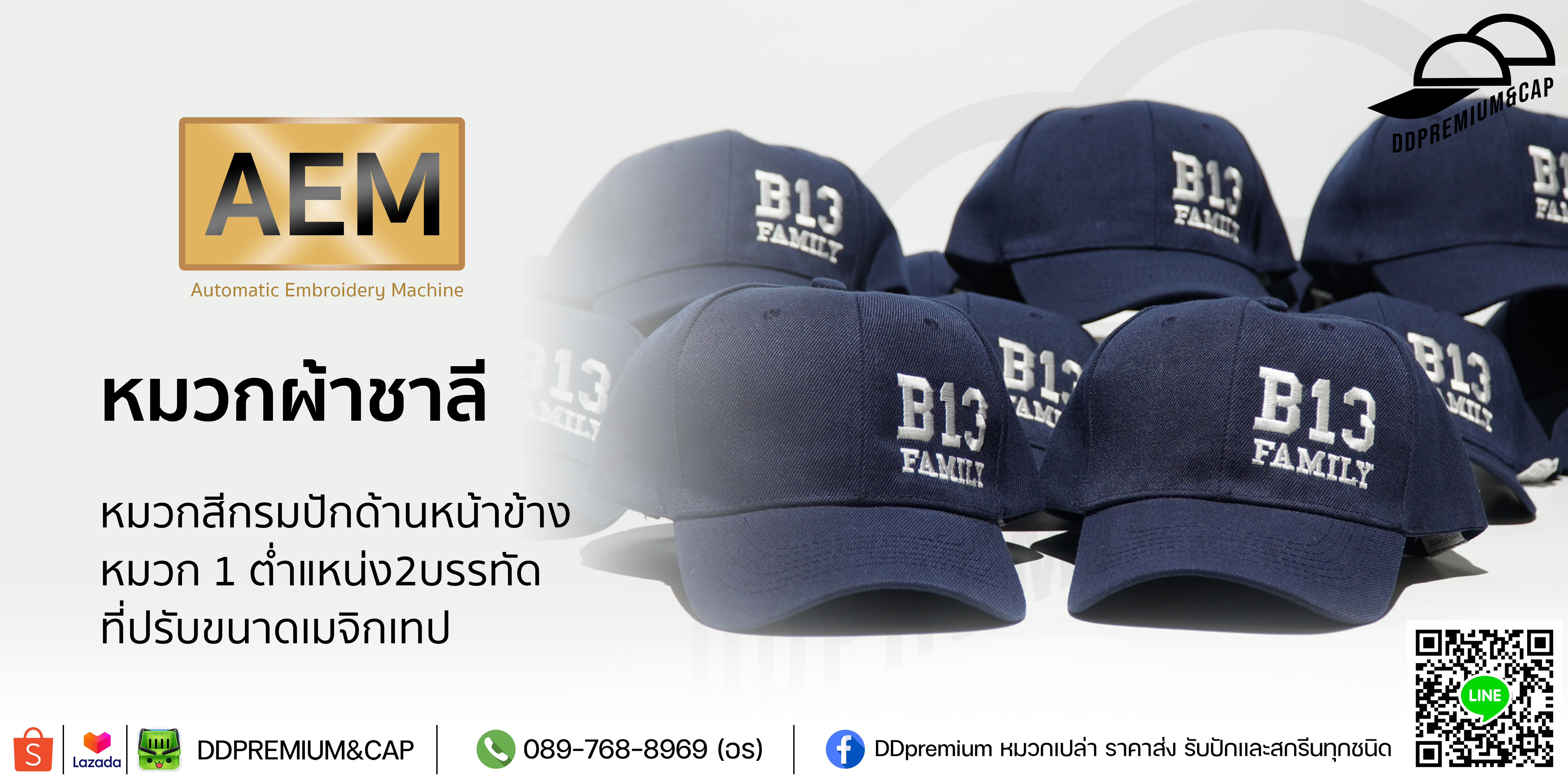 B13 - หมวกผ้าชาลีพร้อมปัก 2 ตำแหน่ง