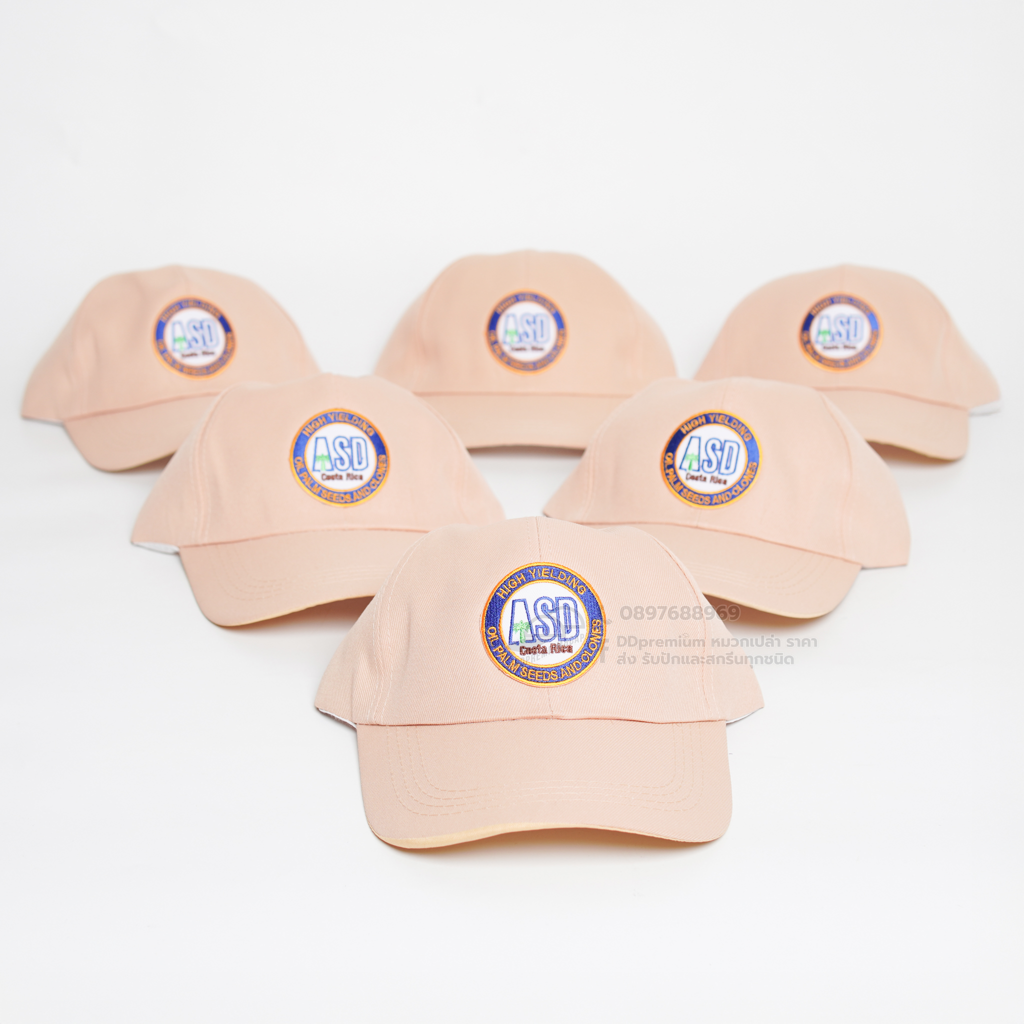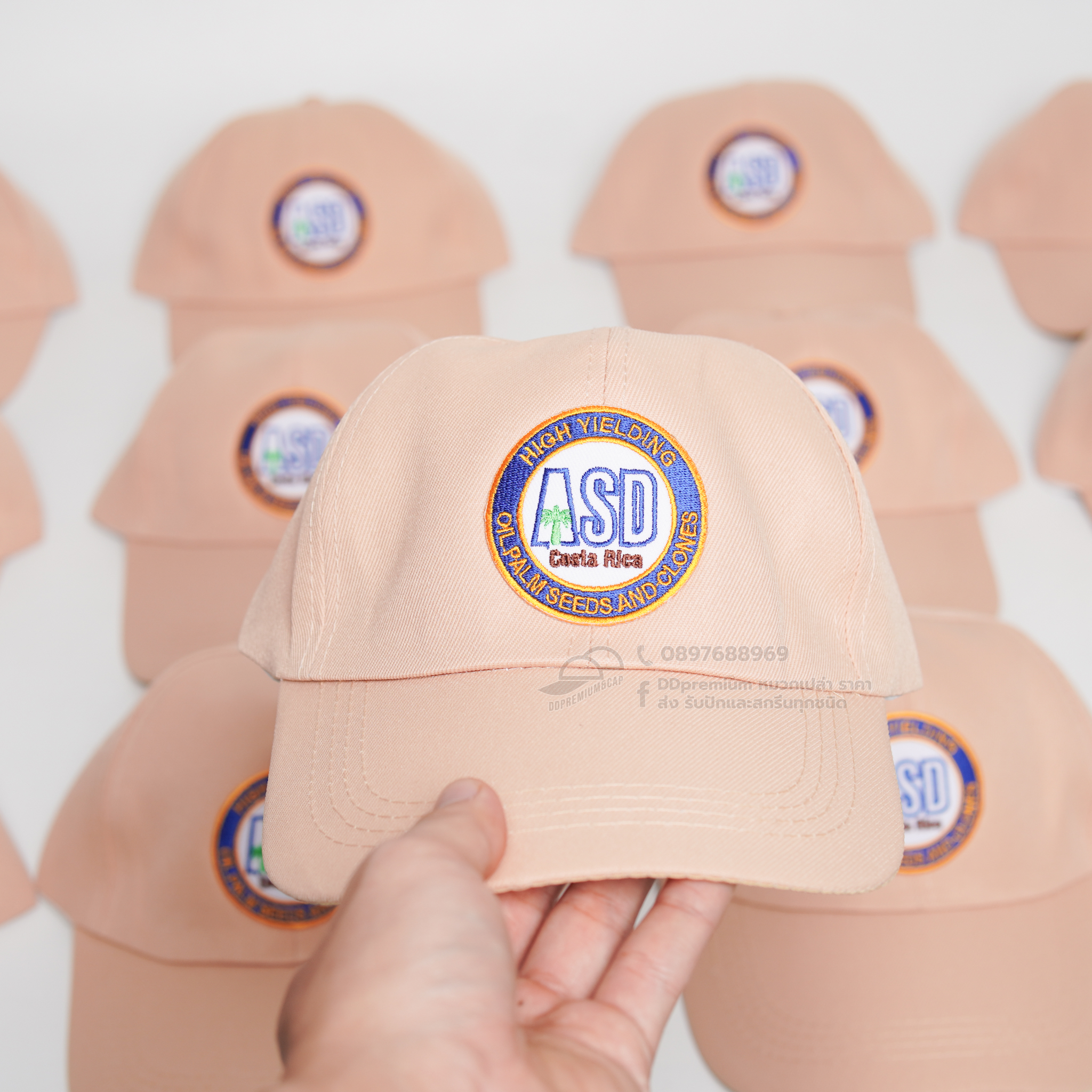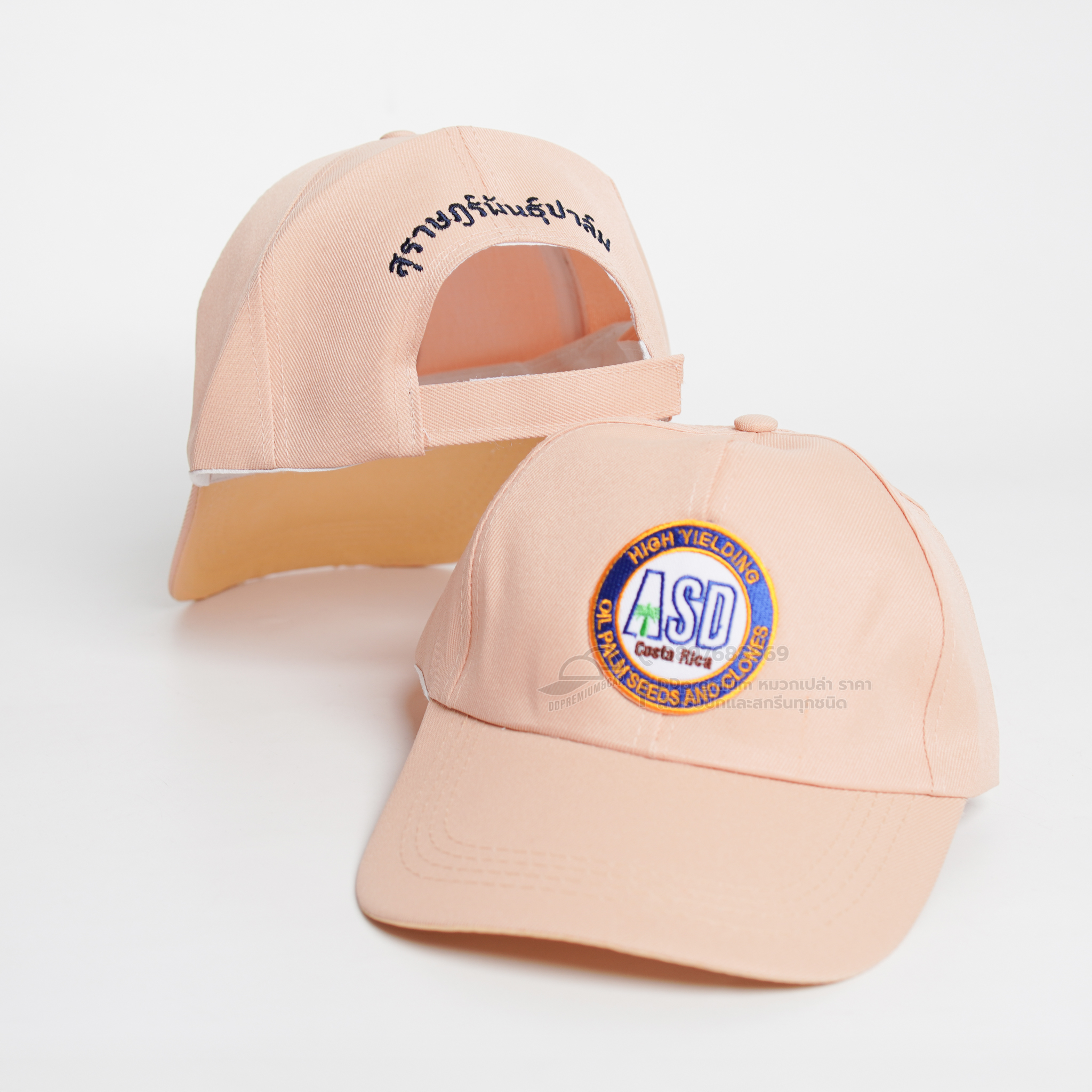ASD | หมวกแก๊ปลีวาย พร้อมปัก 2 ตำแหน่ง ด้านหน้าปักแบบวิธีพิเศษ และด้านหลังปักตัวอักษรโค้งตามหมวก ที่ปรับเมจิกเทป