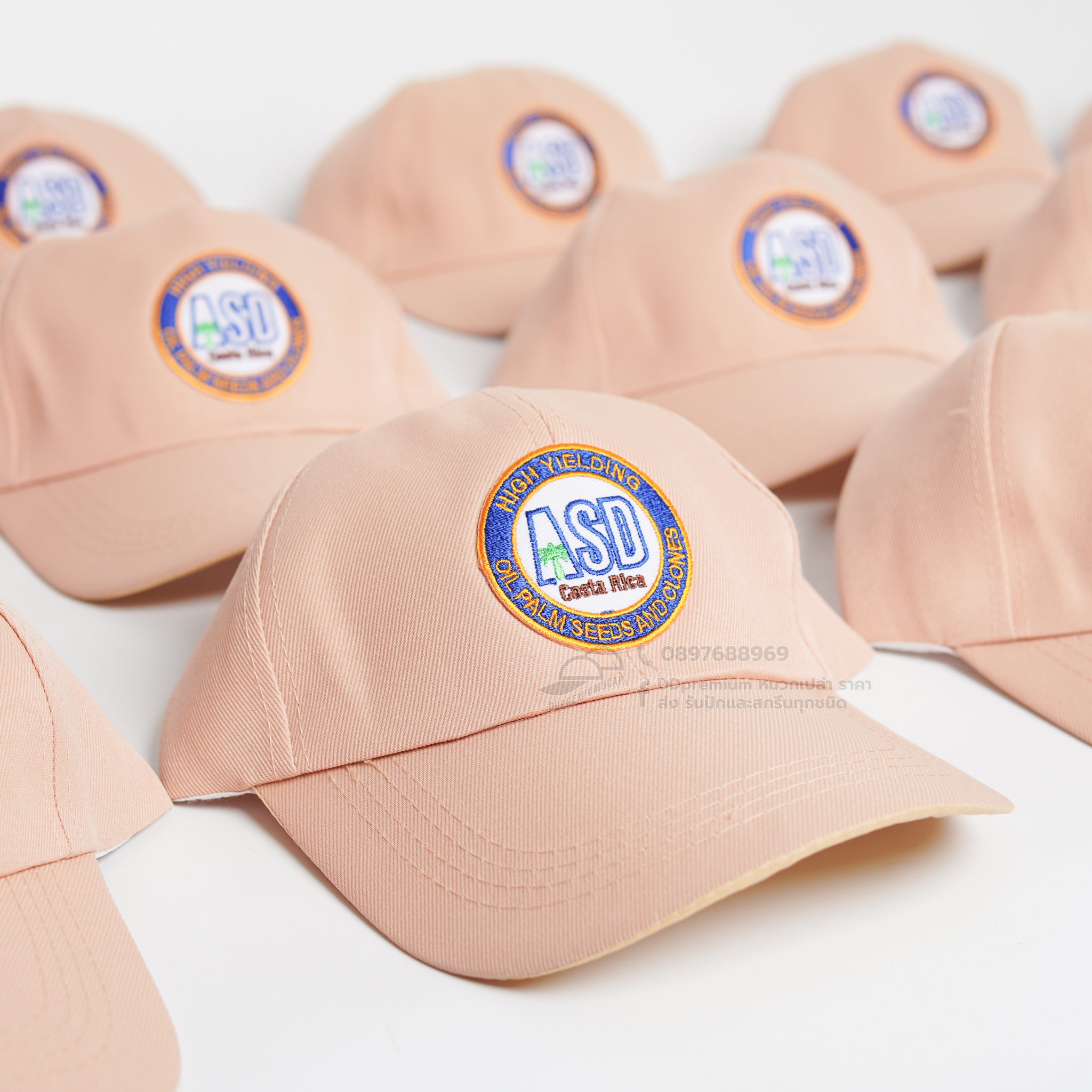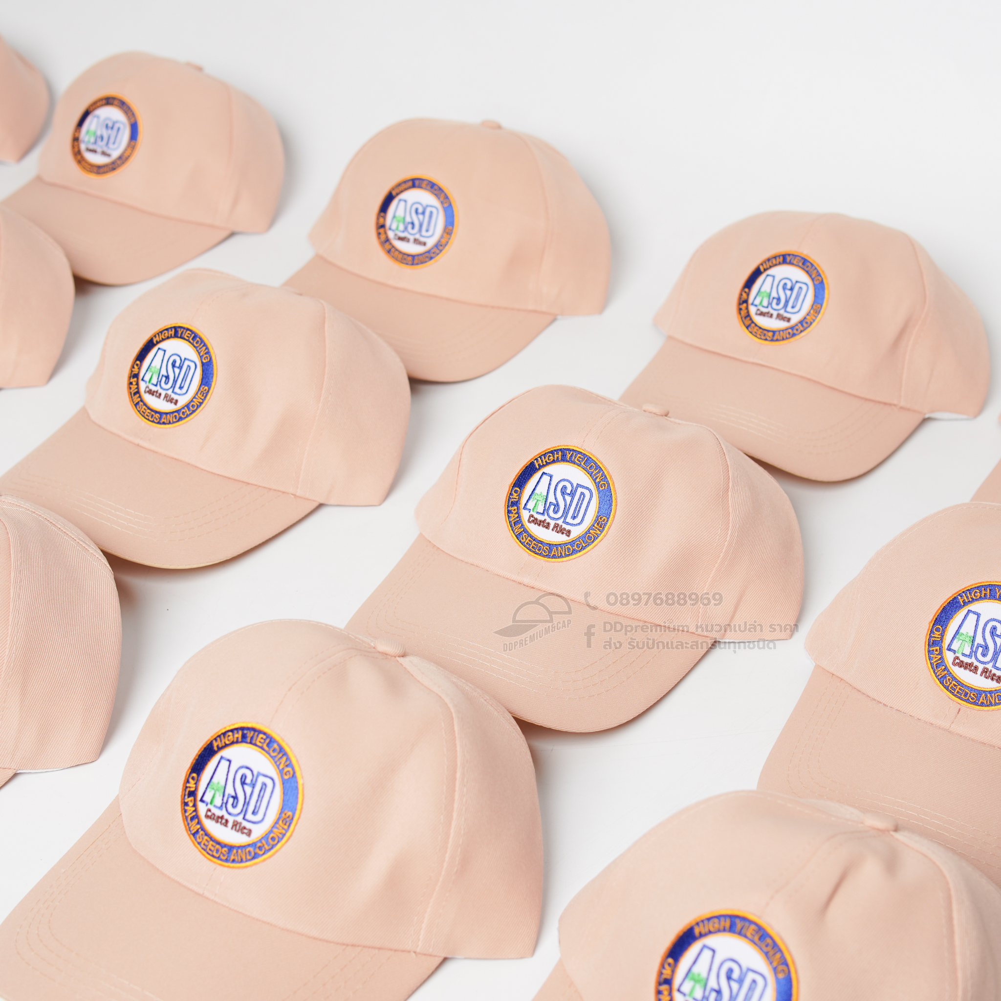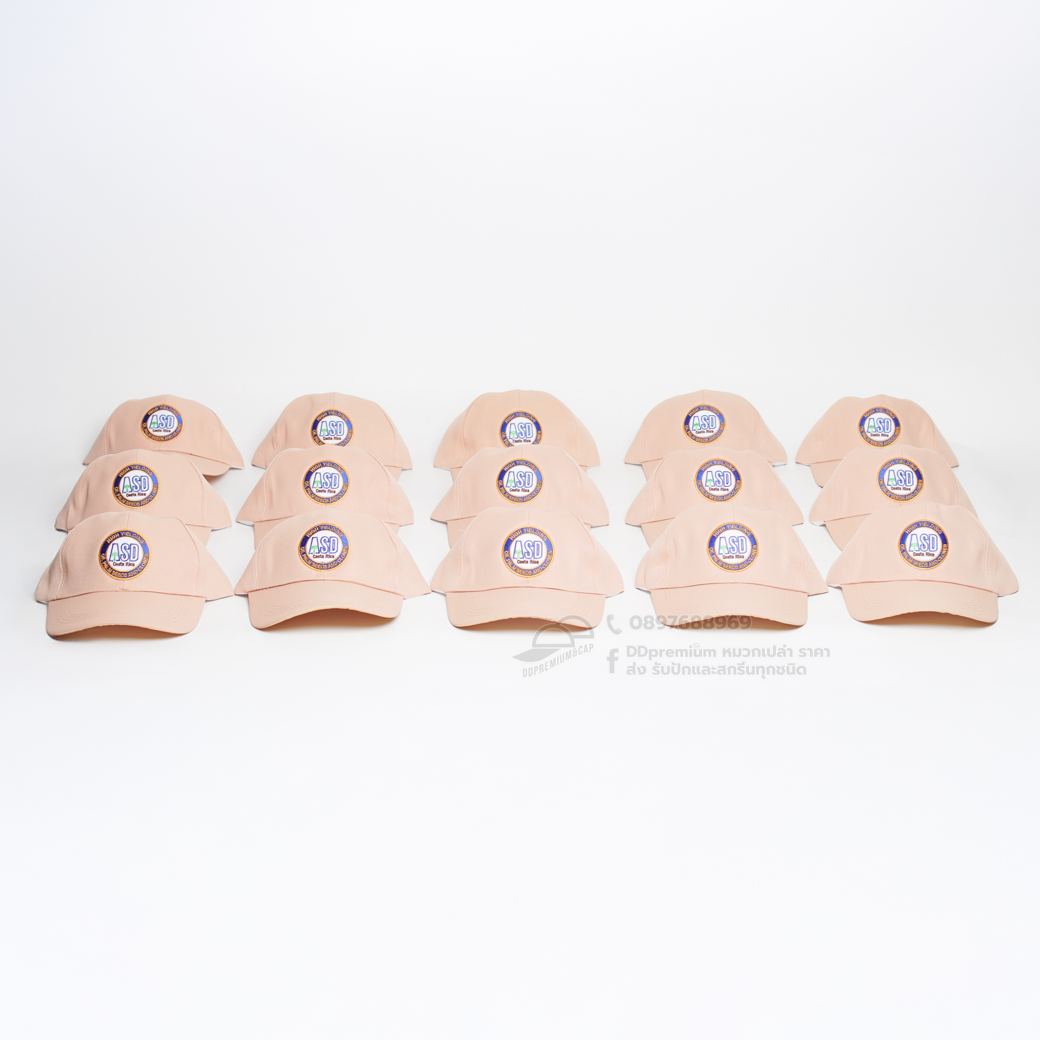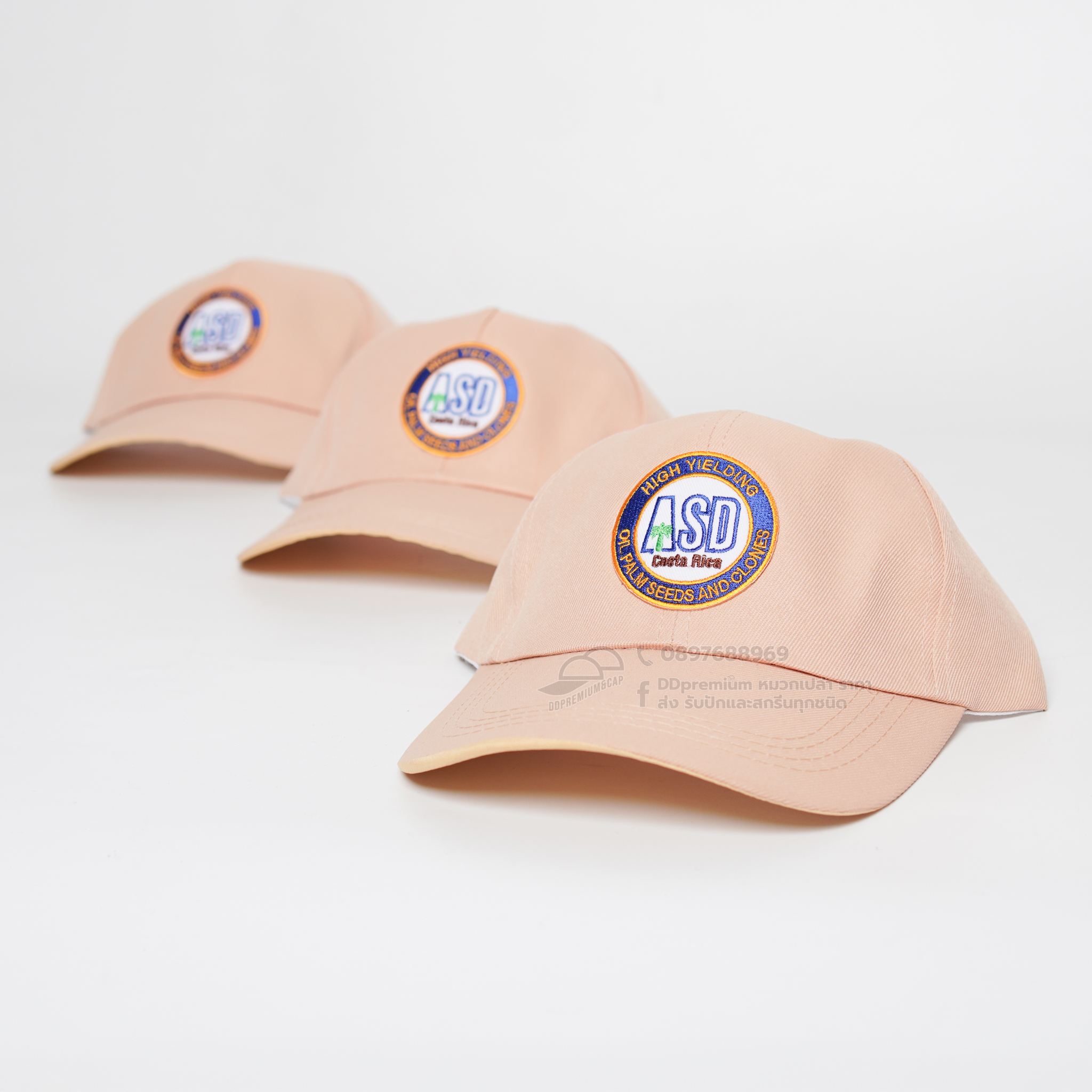 ASD | หมวกแก๊ปลีวาย พร้อมปัก 2 ตำแหน่ง ด้านหน้าปักแบบวิธีพิเศษ และด้านหลังปักตัวอักษรโค้งตามหมวก ที่ปรับเมจิกเทป