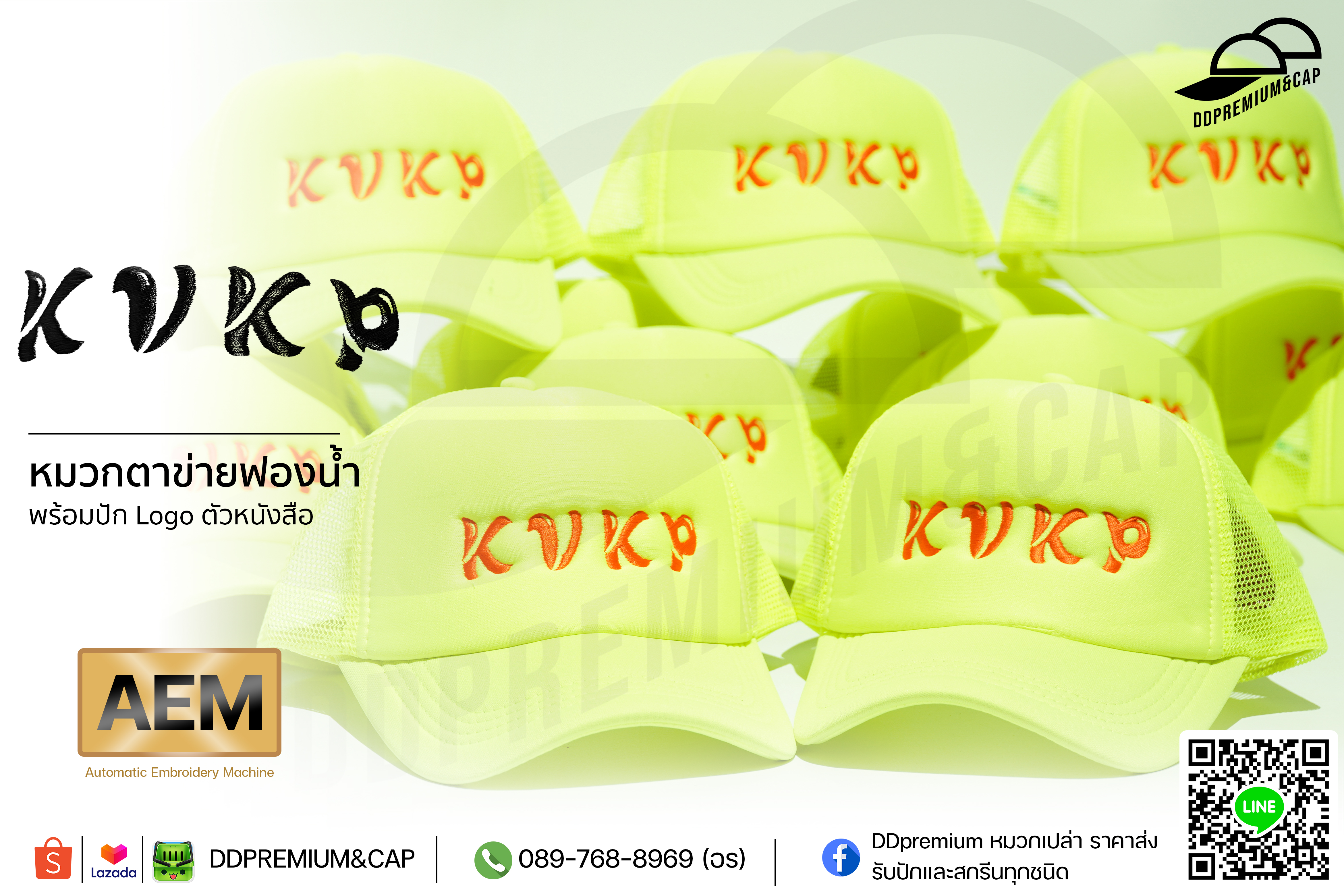 KVKP - หมวกตาข่ายหน้าฟองน้ำ พร้อมปัก Logo ตัวหนังสือ